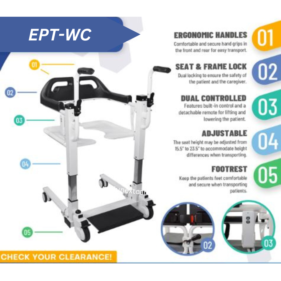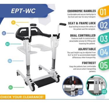 Electric Patient Transfer Wheelchair (Model: EPT-WC) is a revolutionary device designed to provide a convenient and secure way to transport patients with limited mobility around their home or care facility.